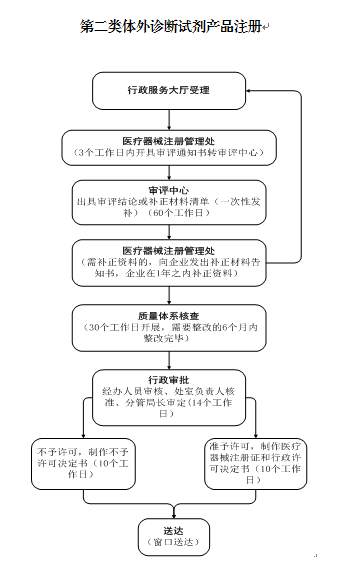2、《体外诊断试剂注册与备案管理办法》(国家市场监督管理总局令第48号)第九条:“……第二类、第三类医疗器械实行注册管理。……境内第二类医疗器械由省、自治区、直辖市药品监督管理部门审查,批准后发给医疗器械注册证。……”
